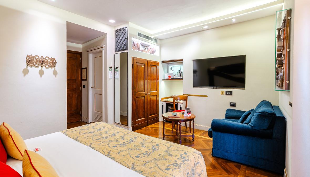 Les chambres Doubles Deluxe, sont des chambres élégantes, accueillantes et bien aménagées, avec un confortable lit double ou deux lits simples, bureau, armoire, télévision à écran plat, bouilloire avec grand choix de thé et de café.
